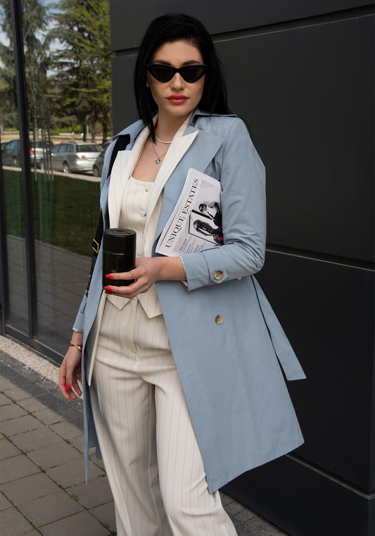 Лек Дамски Шлифер с Реглан ръкав в Светлосиньо