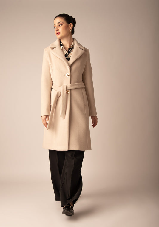 Вталено Дамско Палто от Вълнен микс в Бежово