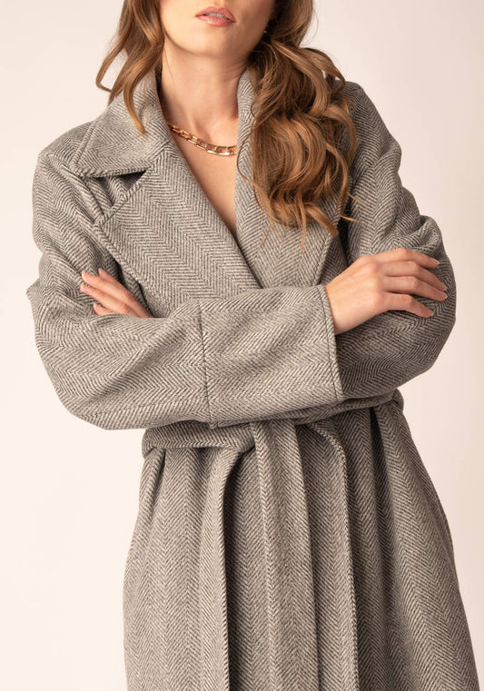 Дълго Дамско Палто със съдържание на Вълна в Сиво
