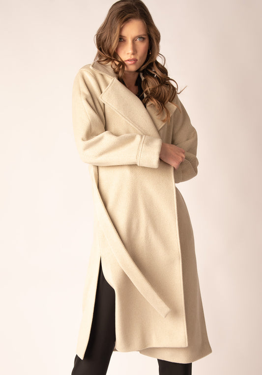 Дълго Дамско Палто със съдържание на Вълна в Бежово