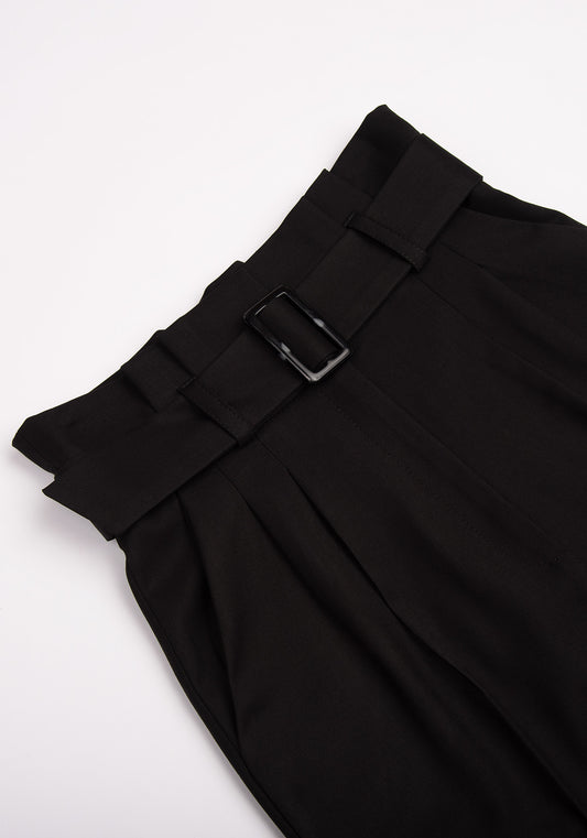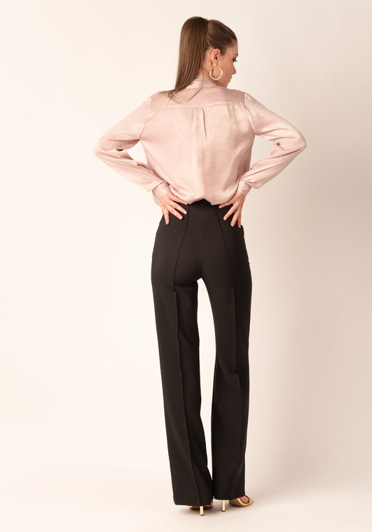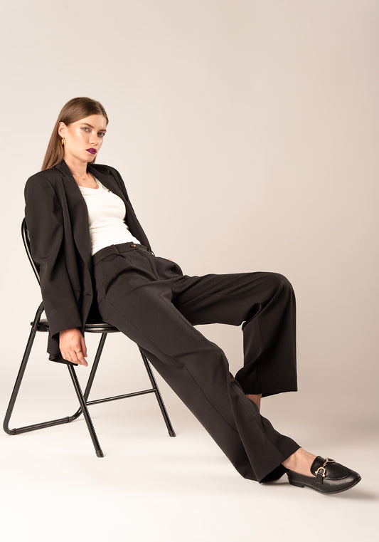 Официален Дамски Широк Панталон с Висока Талия в Черно