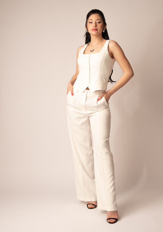 Разкроен Дамски Панталон с Широк колан в Екрю