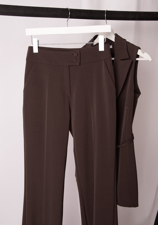 Разкроен Дамски Панталон с Широк колан в Espresso