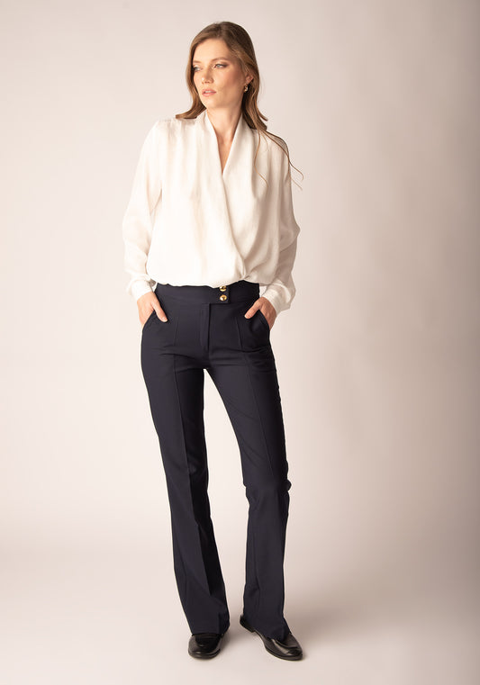 Тесен Дамски Панталон с Висока Талия в Тъмносиньо