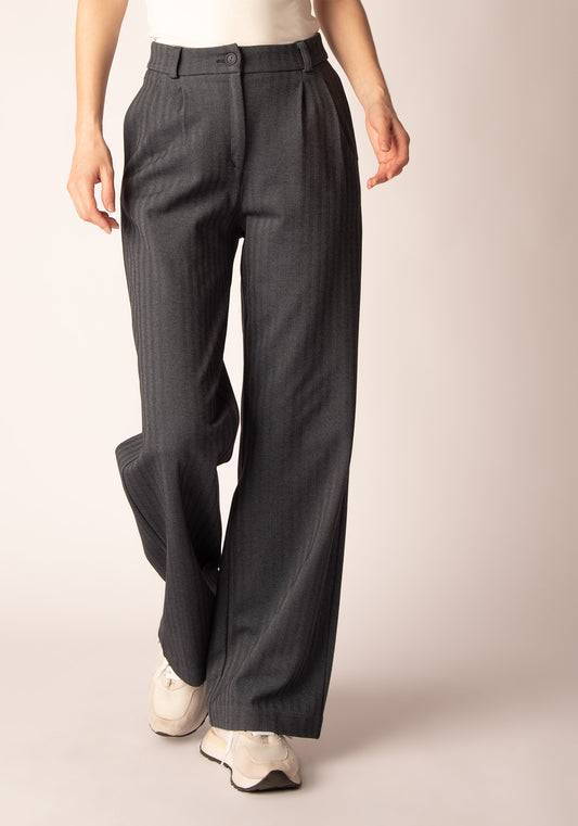 Дамски Панталон с Прав Силует в Рибена кост - Синьо- Сив