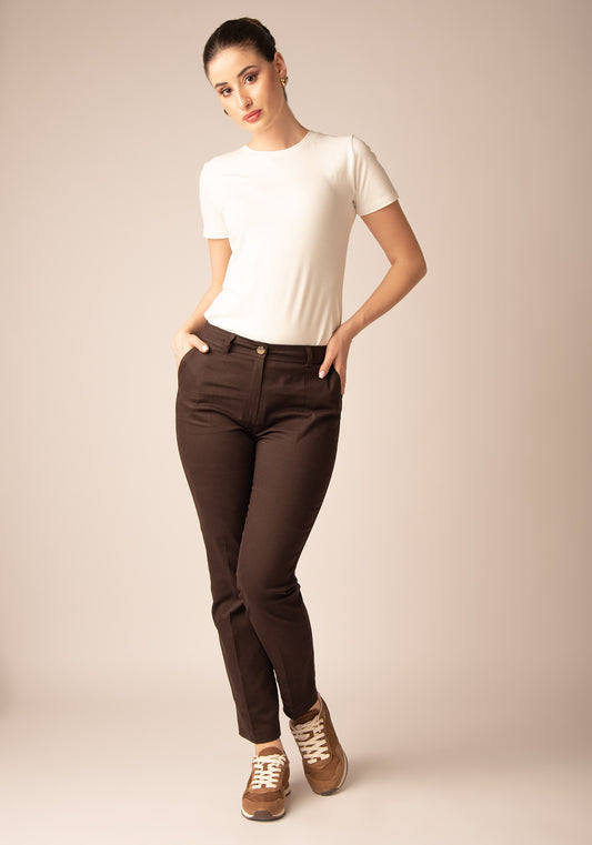 Cropped Дамски Панталон в Espresso