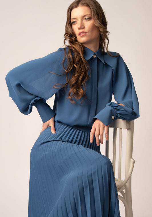 Елегантна Дамска Риза с Цепки на Ръкавите в СиньоNo reviewsОбичайна цена 169.00 BGNОбичайна ценаЕдинична цена / за-