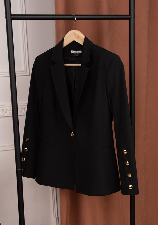 Women's Tailored Single breasted Blazer with Gold buttons in Black