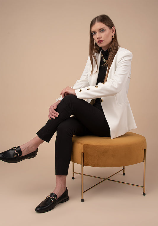 Women's Tailored Single breasted Blazer with Gold buttons in Ecru