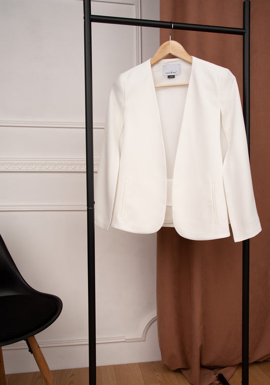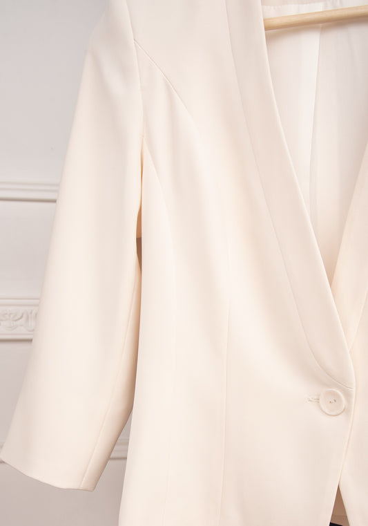 Women's Tailored Single breasted Blazer with Cropped Sleeves in Ecru