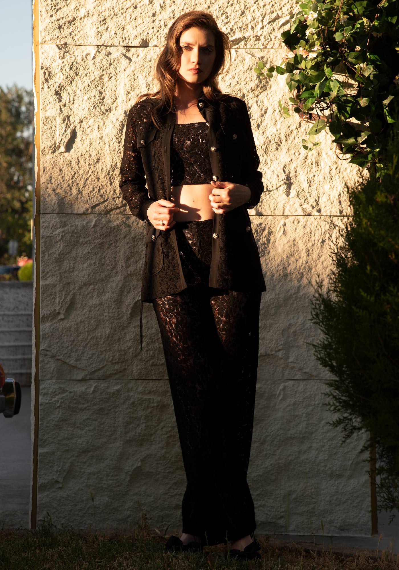 Women's Belted Lace Jacket in Black