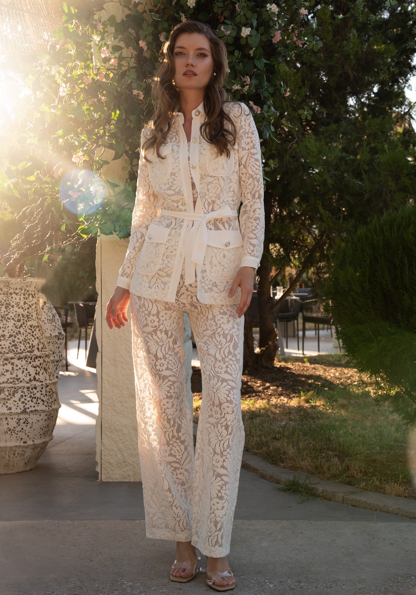 Bring a touch of luxury to your wardrobe with our Women's Belted Lace Jacket, designed for women who value style and sophistication. This jacket is the perfect addition for any special occasion or formal meeting, giving you a unique and impressive look. The delicate lace adds femininity and romance, while the refined tailoring ensures comfort and style.