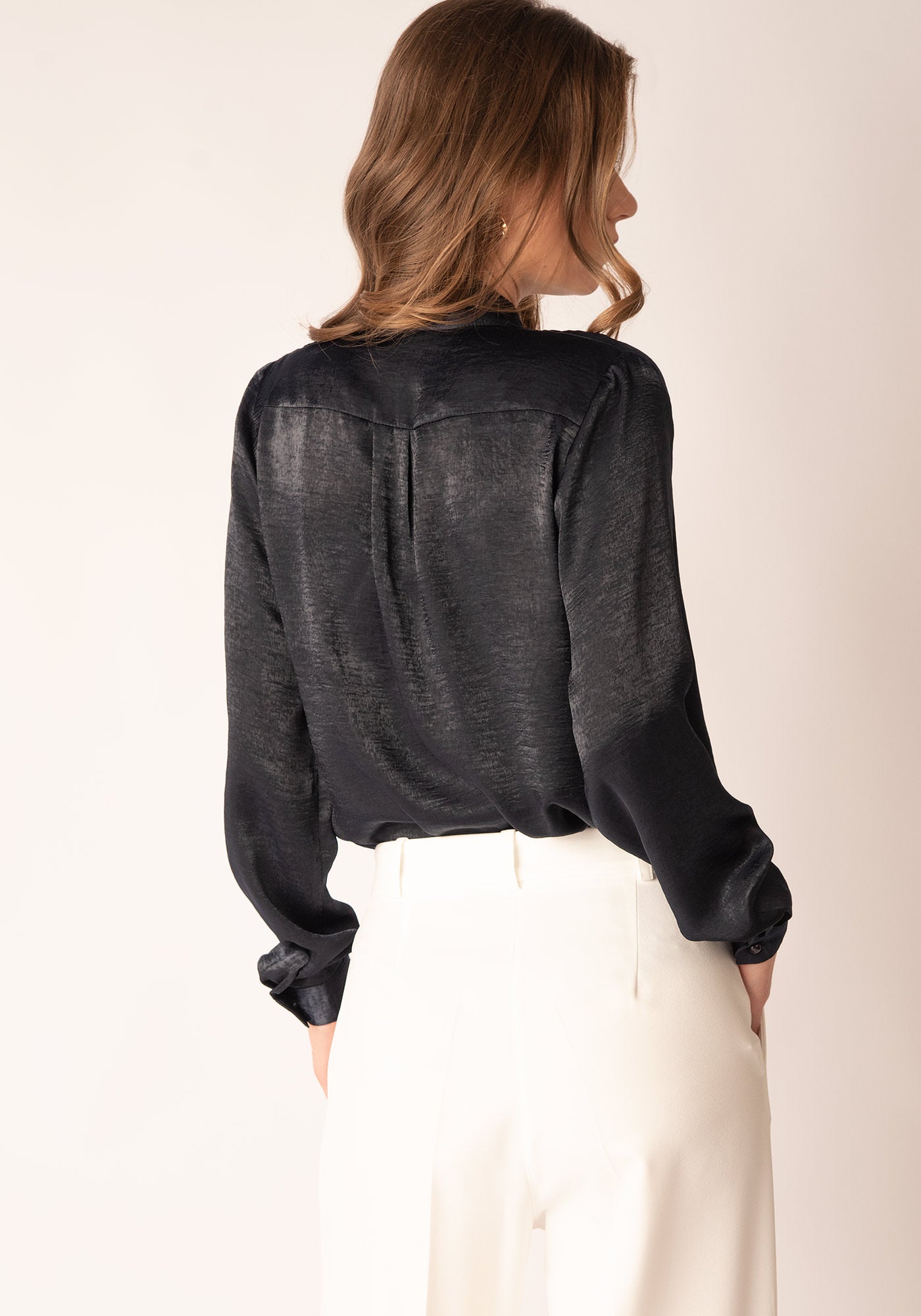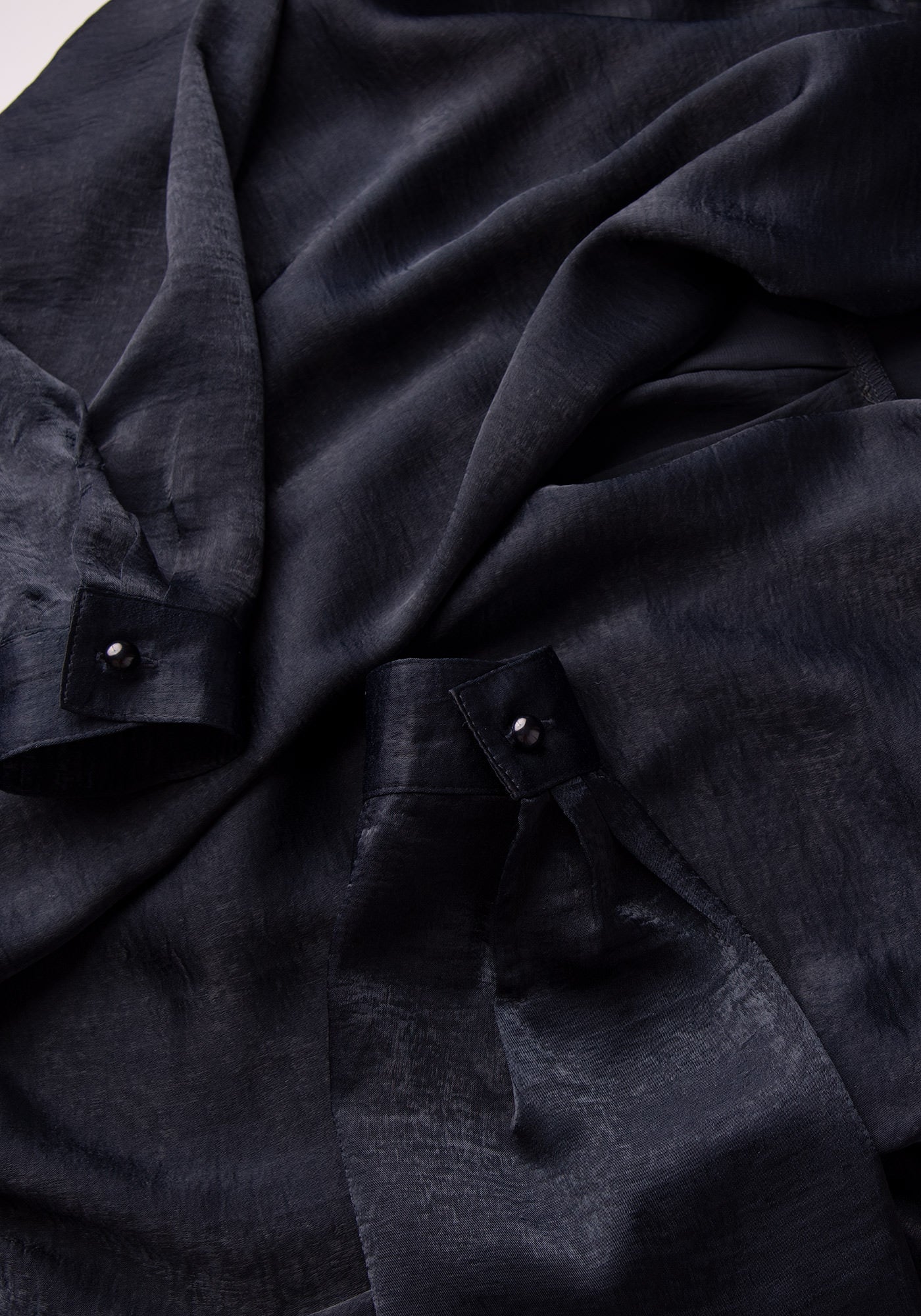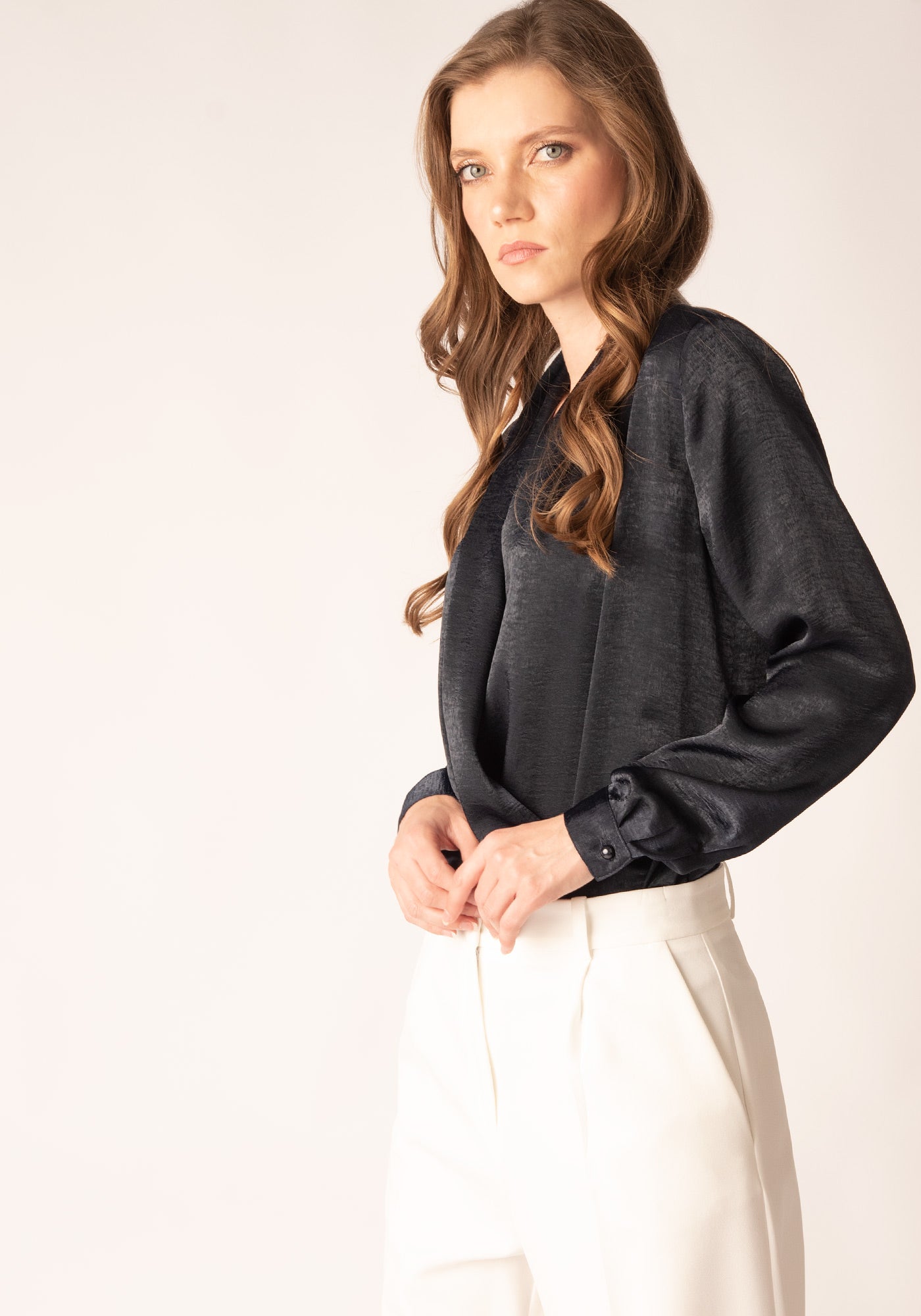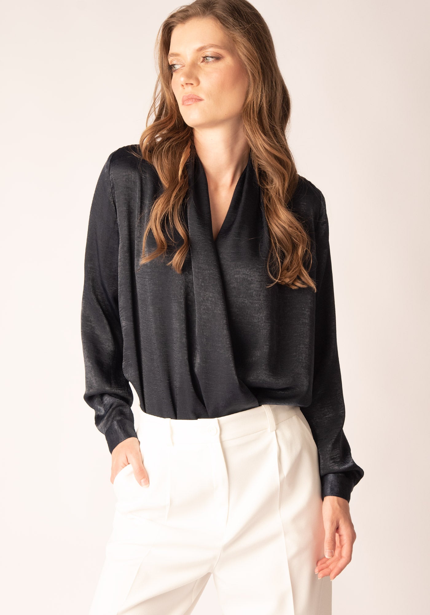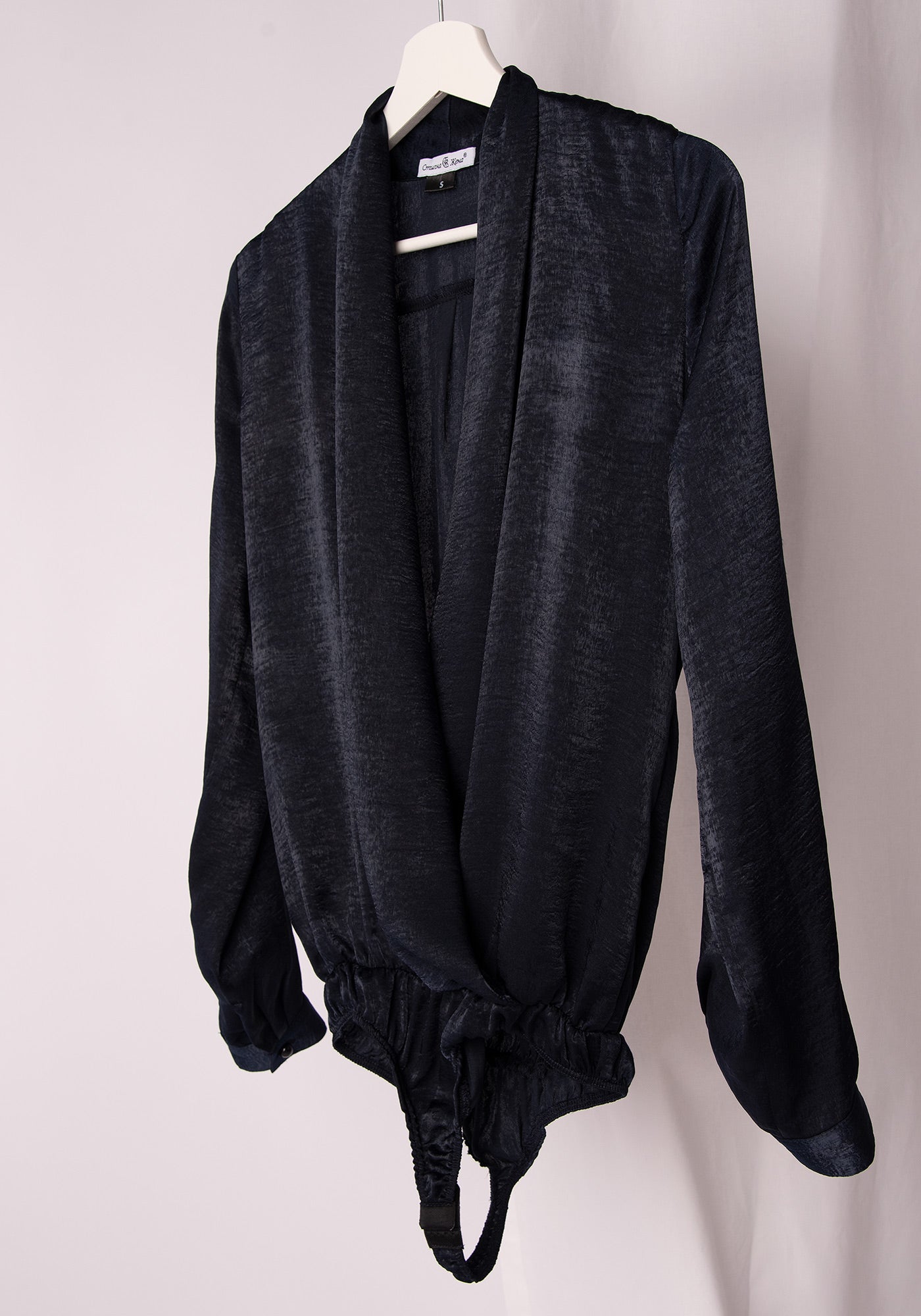 Дамска Риза - Боди Прегърни ме от Сатен в Тъмносиньо