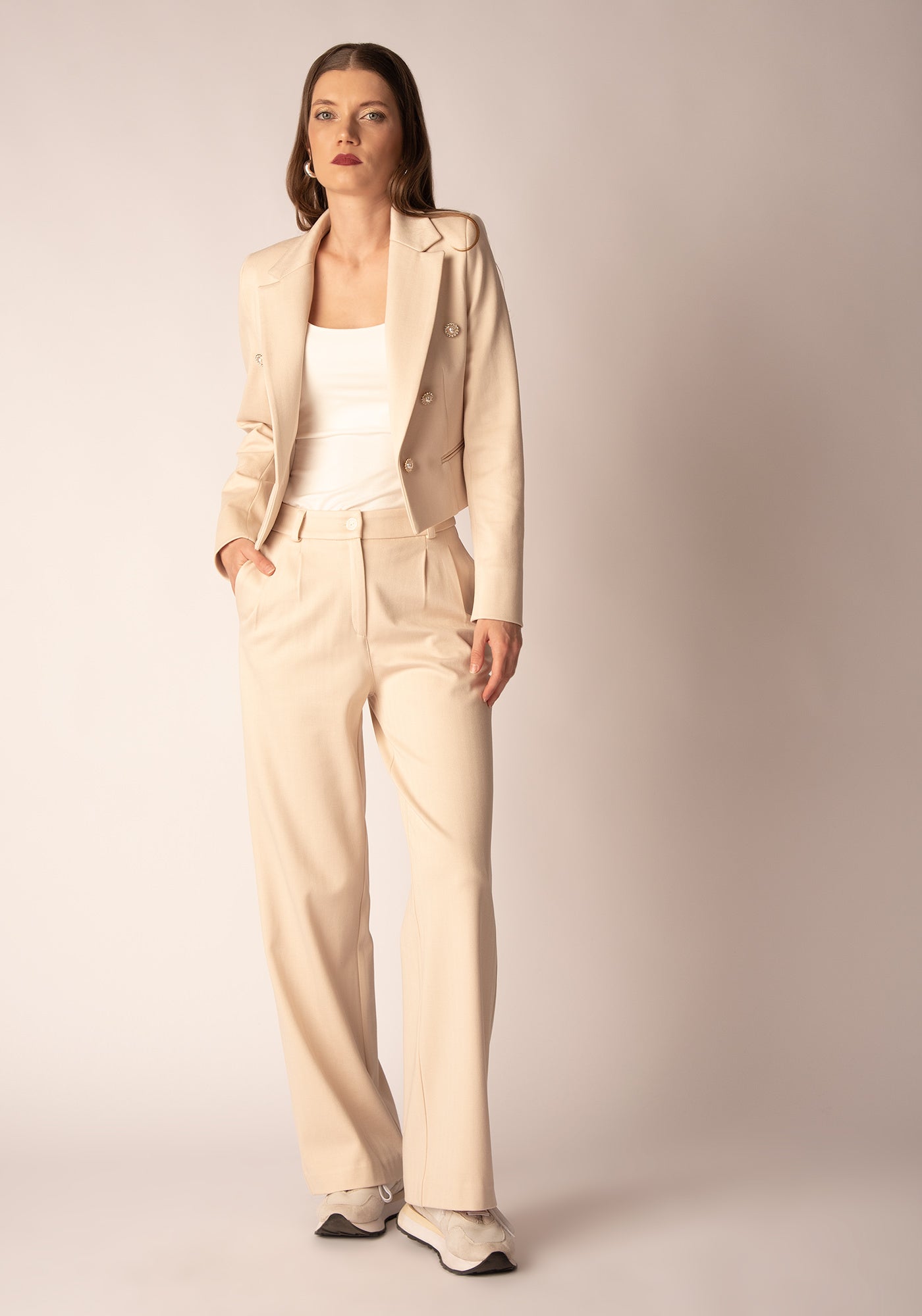 Дамски Панталон с Прав Силует в Рибена кост - Шампанско