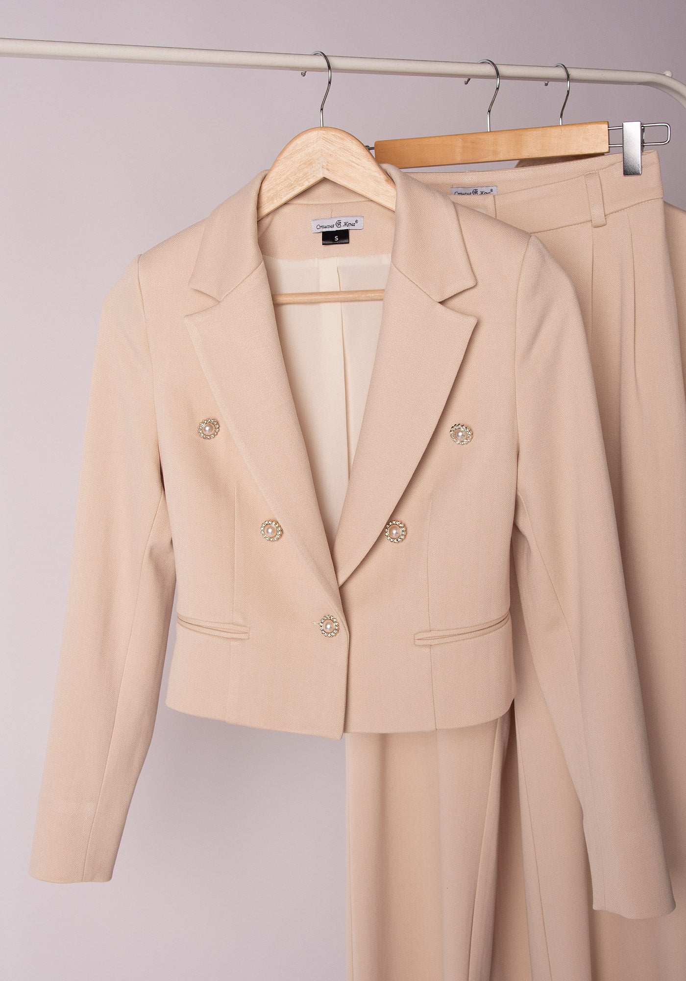Дамско Вталено Сако от Рибена кост - Шампанско