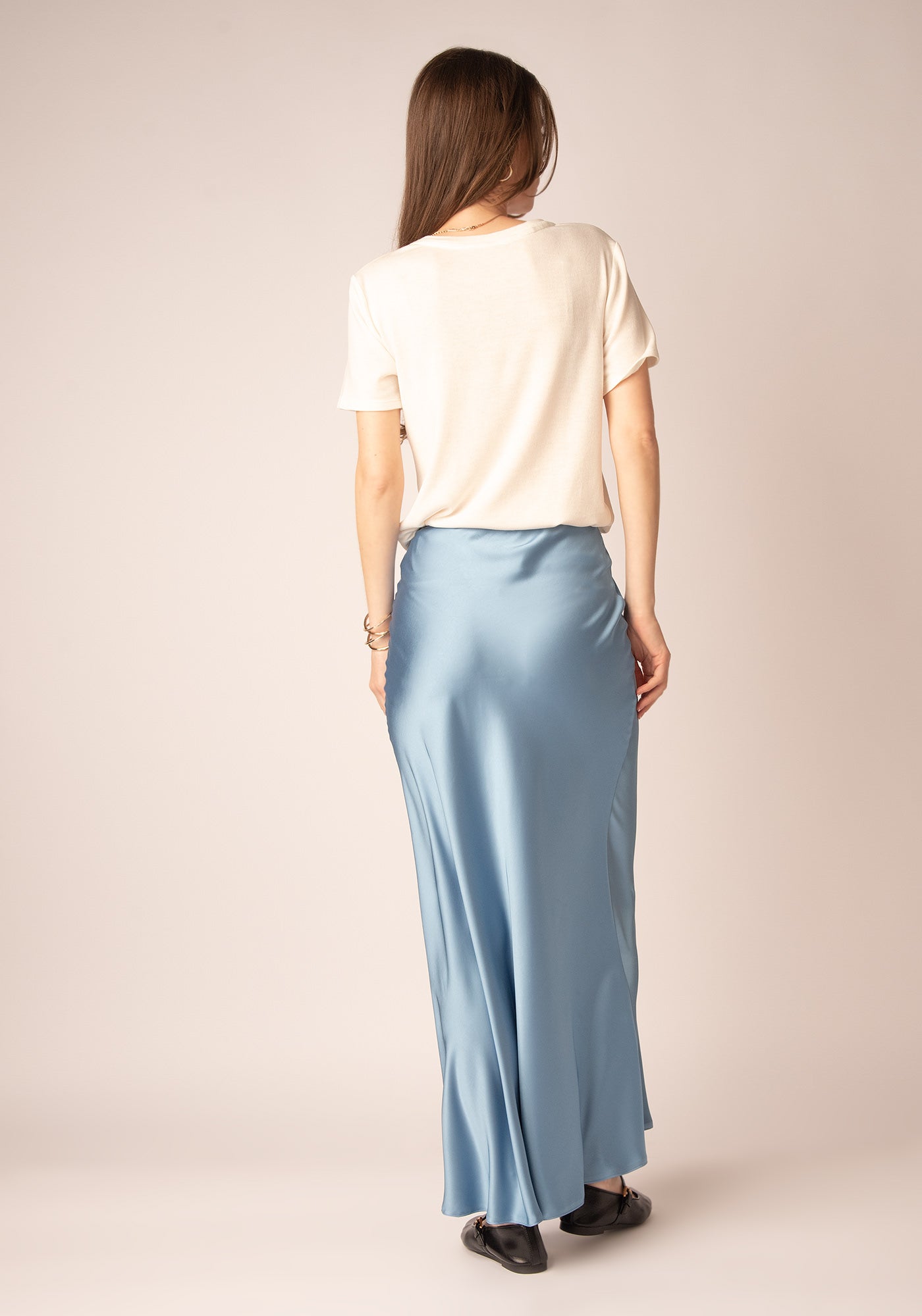 Сатенена пола с висока талия и макси дължина. Веревната кройка се плъзга гальовно по фигурата, а лекото разкрояване позволява свобода на движение и грациозен силует. Луксозната материя ще направи визията ти екстра шик casual, а ако добавиш токчета ще обереш комплиментите на всеки повод. Съчетай я с нашия сатенен топ за total look.