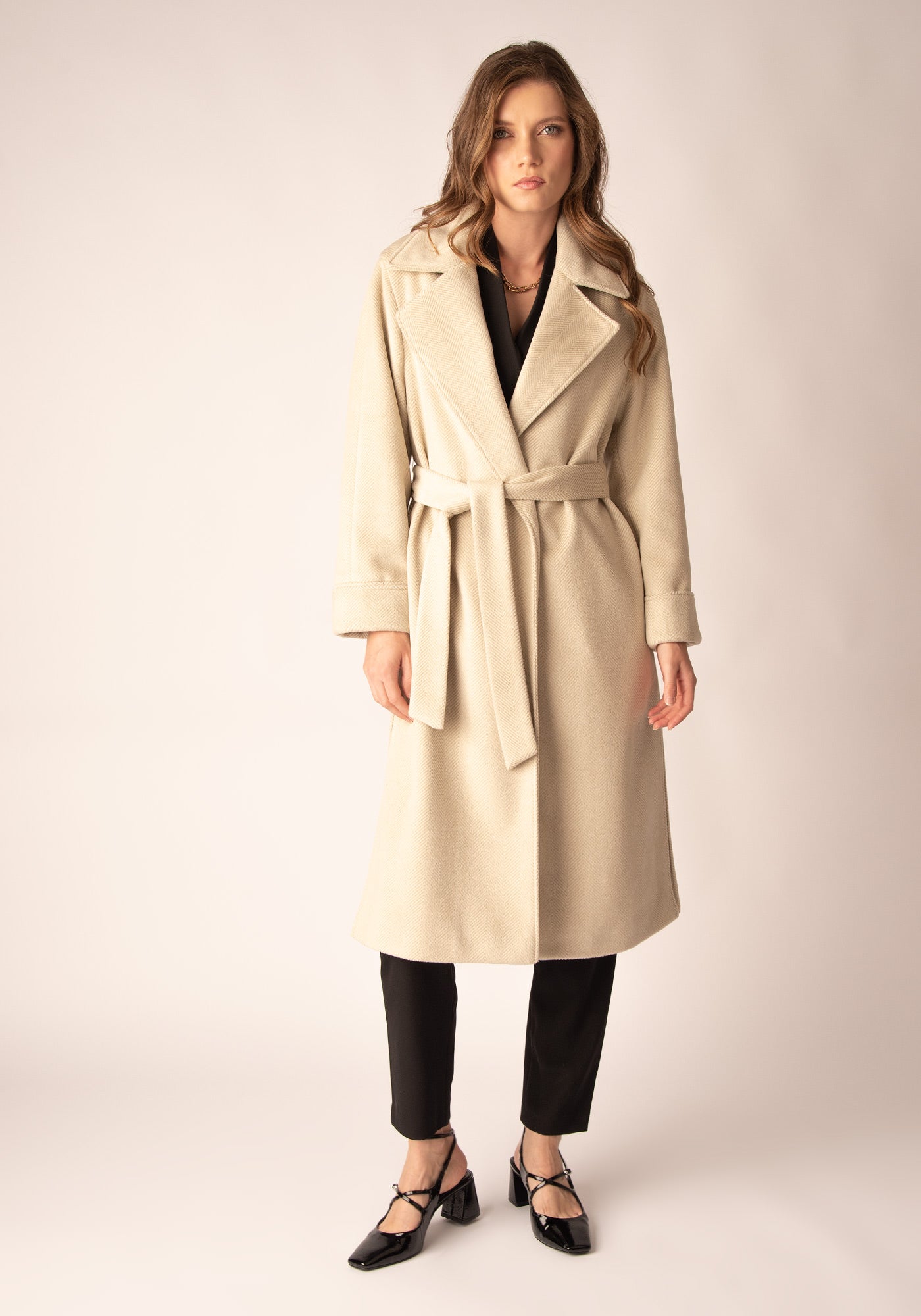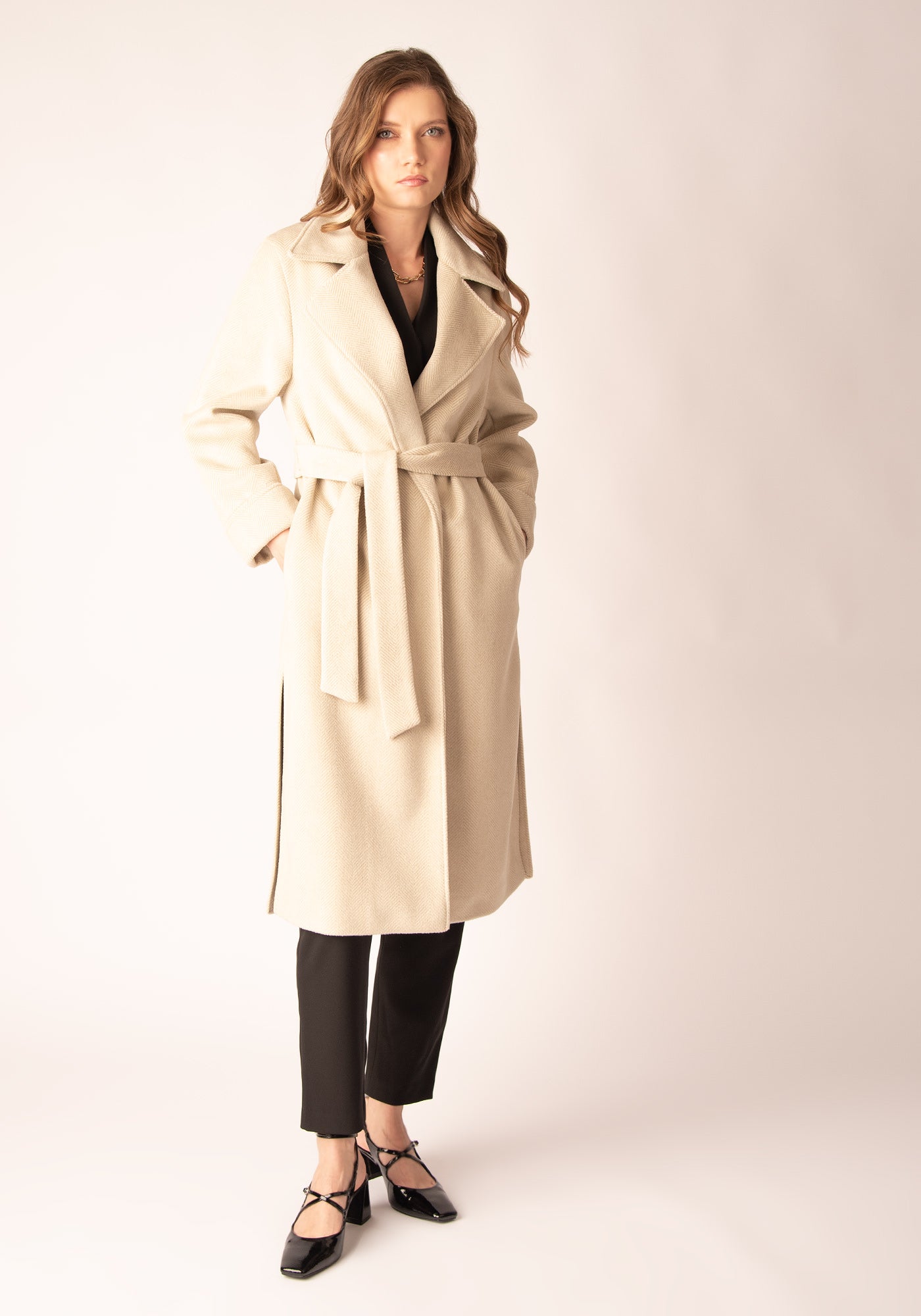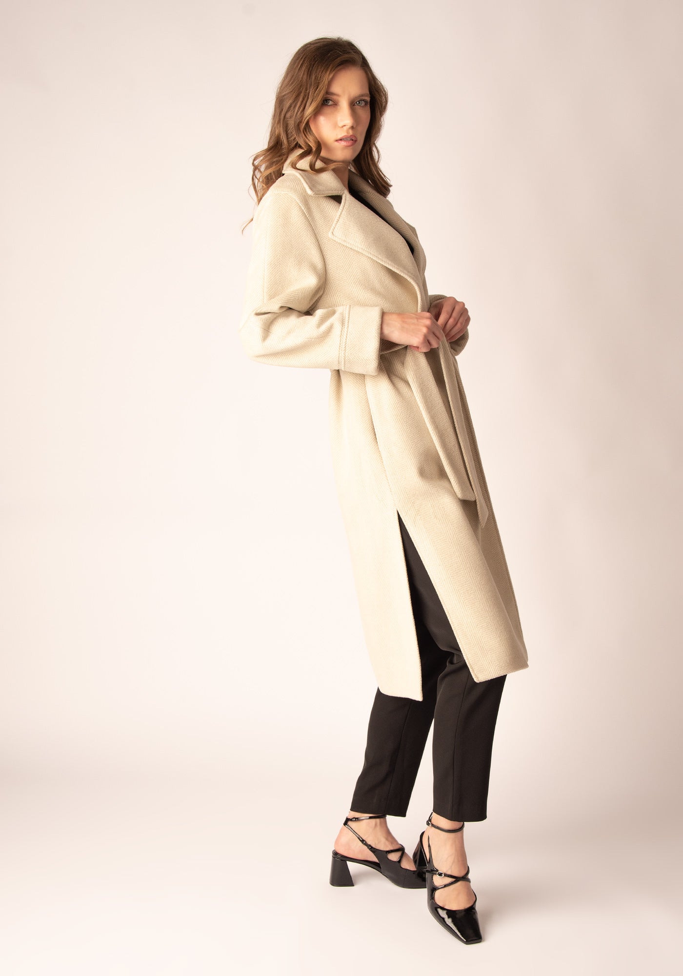 Дълго Дамско Палто със съдържание на Вълна в Бежово
