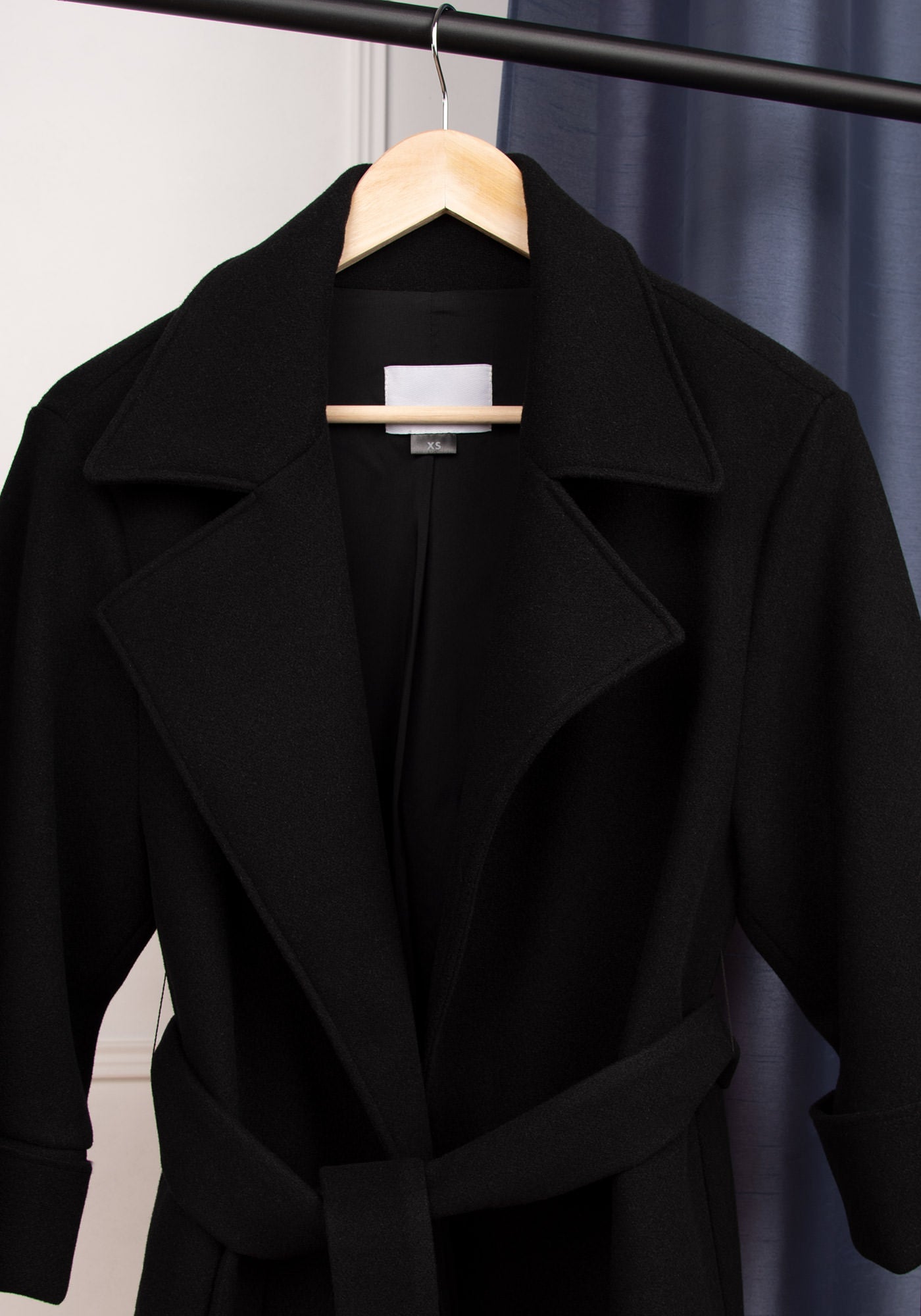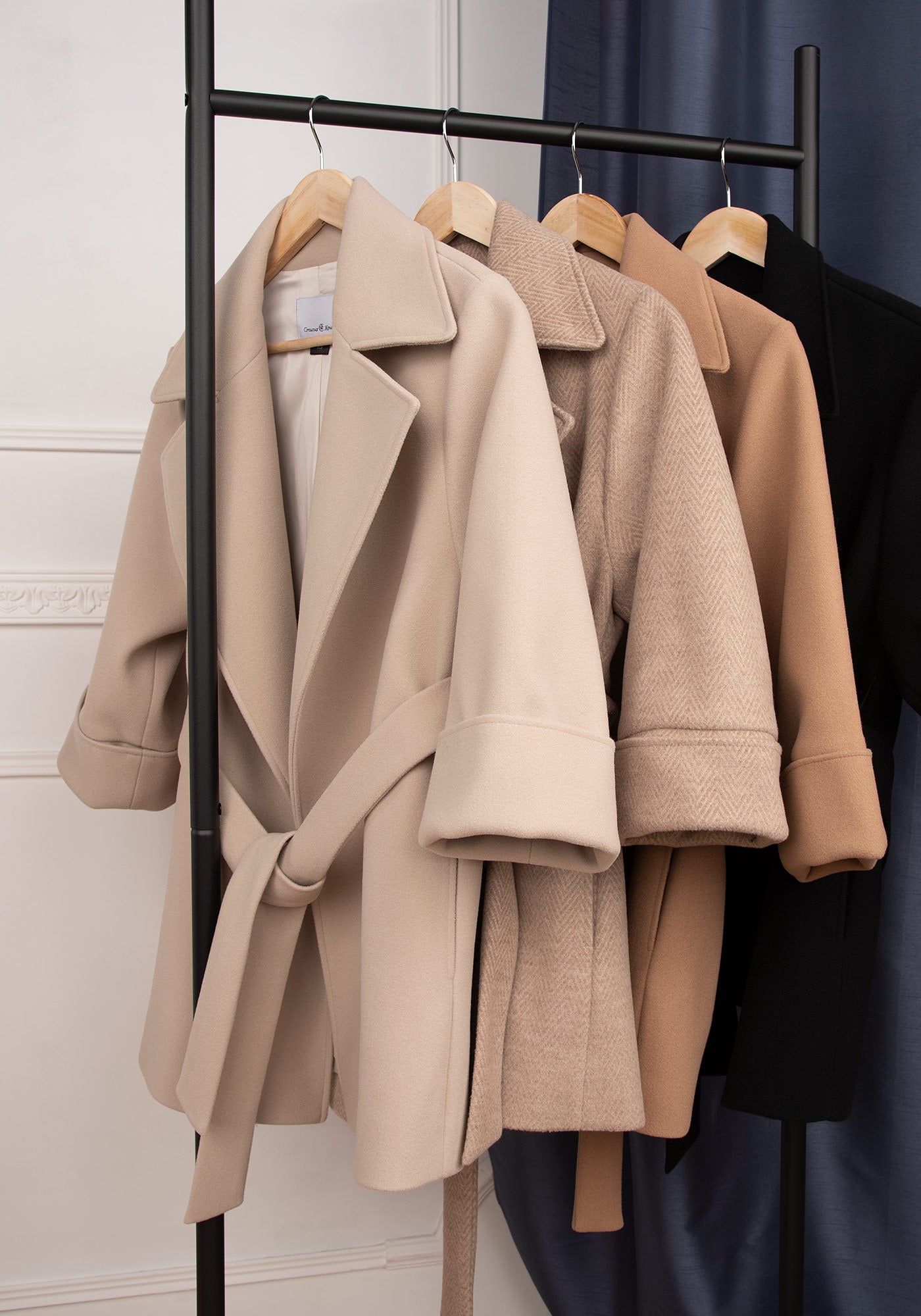 Късо дамско палто с елегантен широк ревер и модерен свободен силует. С паднало рамо и скъсен ръкав, с подгъващ се маншет. Мек колан, пристягащ талията и фунционални странични джобове. Изработено от плътна и топла материя със съдържание на вълна и напълно подхастарено.