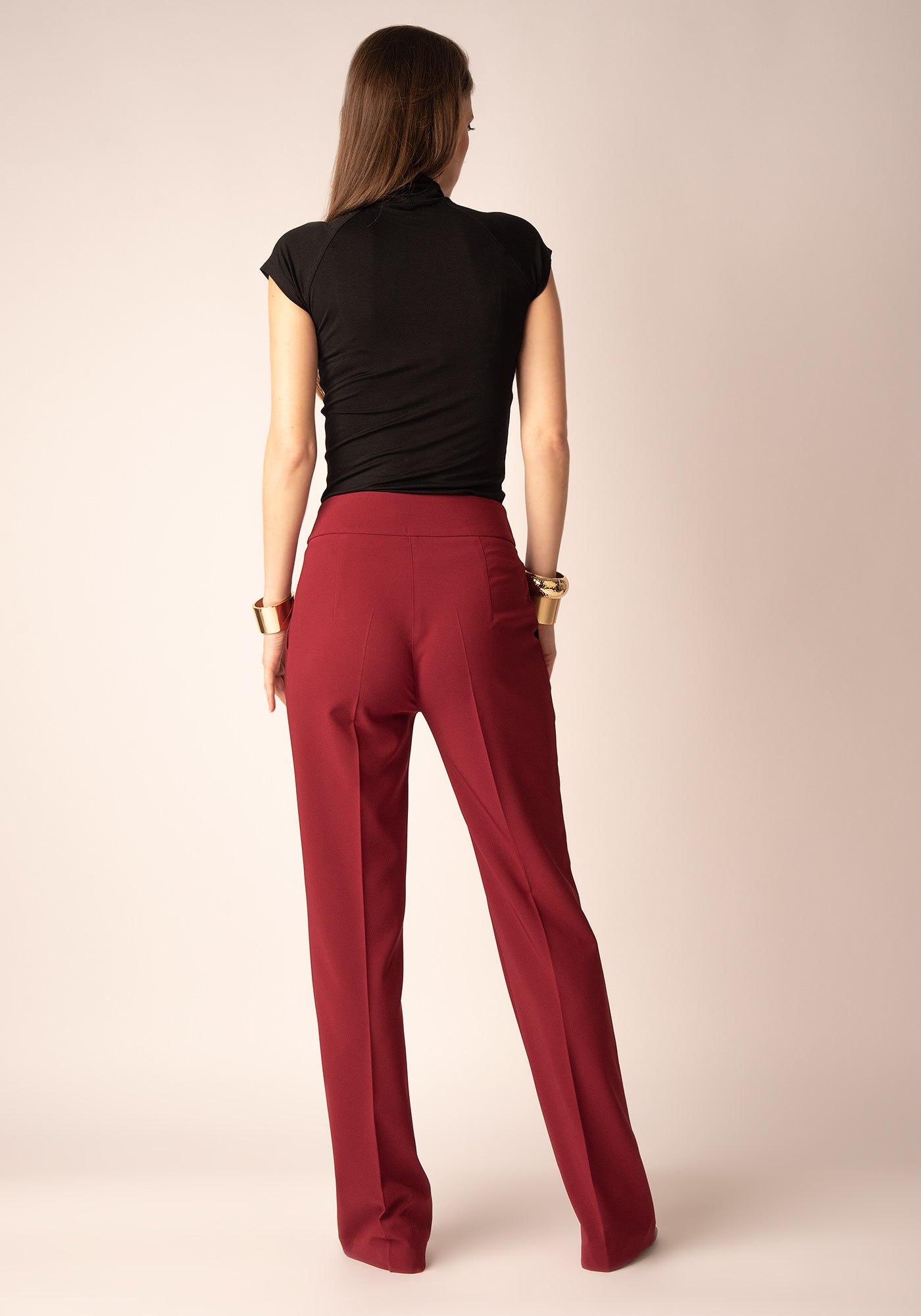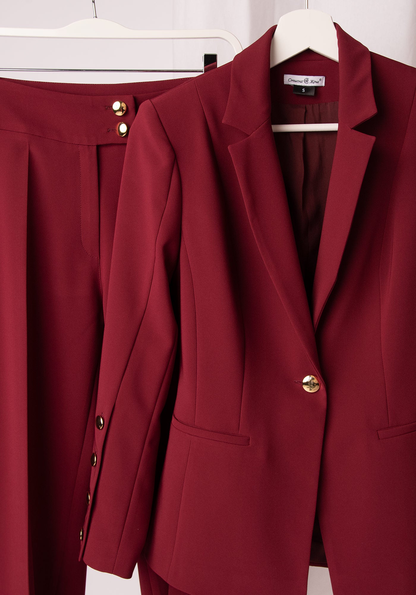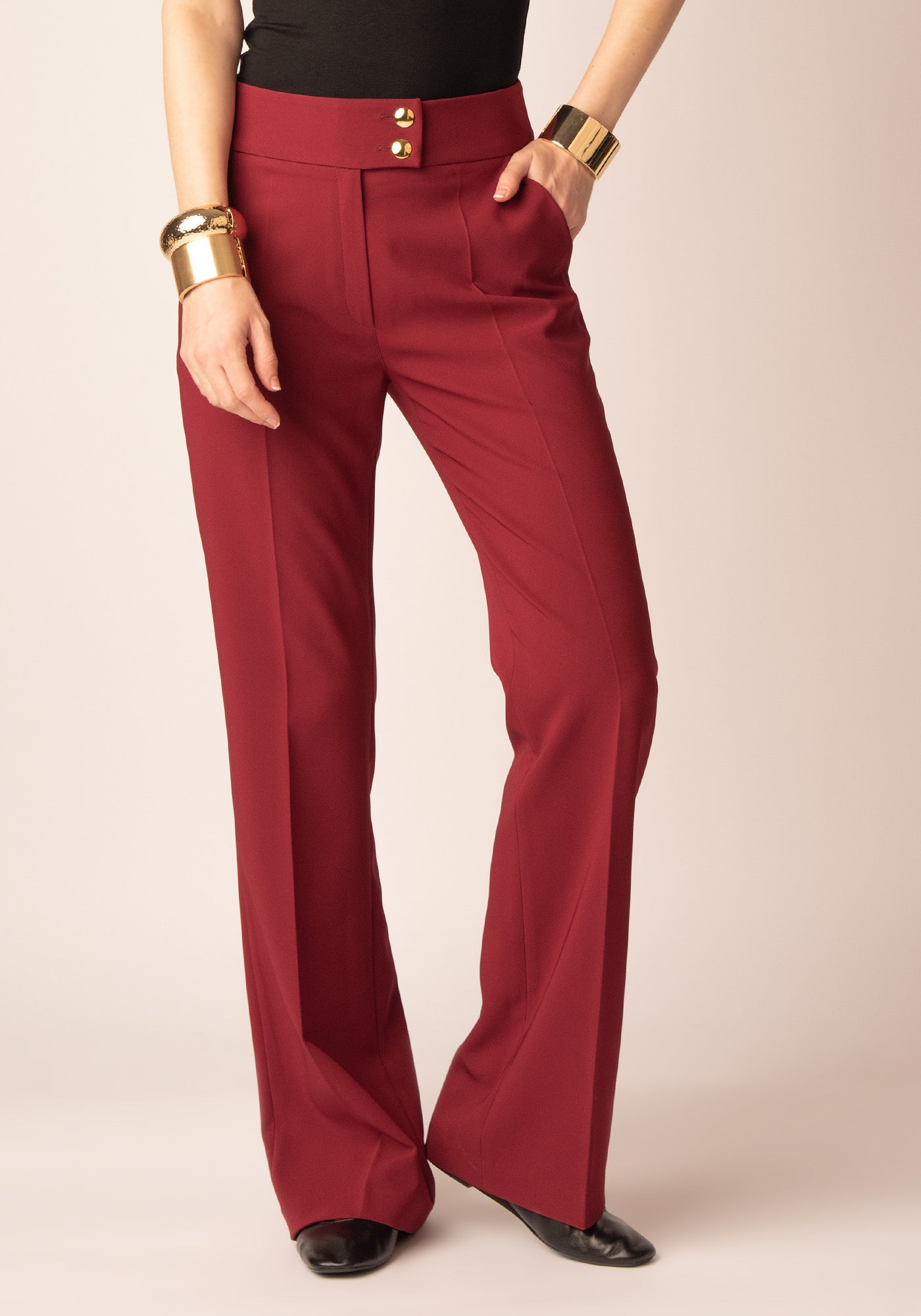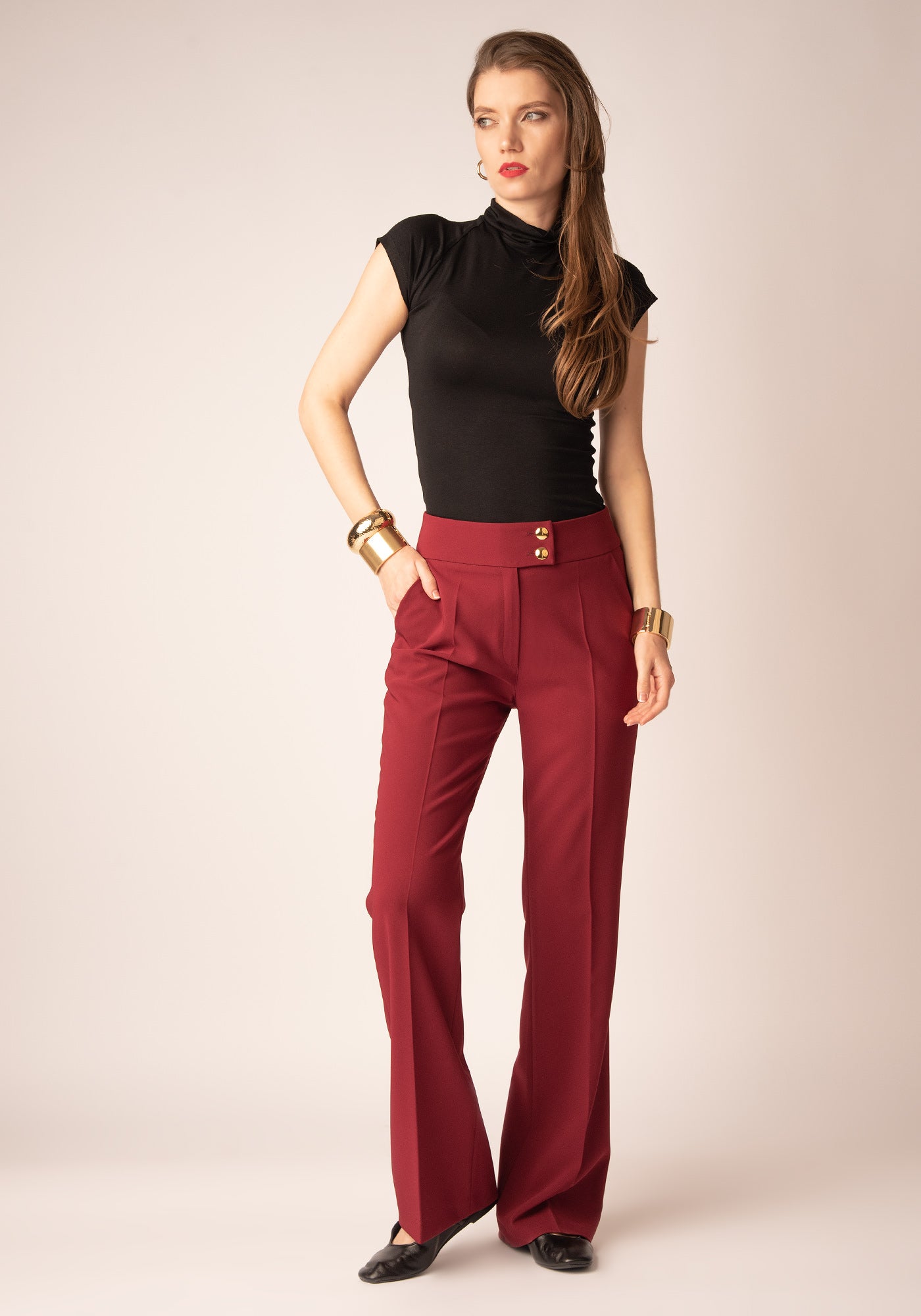 Разкроен Дамски Панталон със Златисти копчета в Бордо
